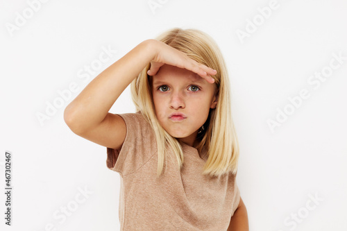 Fototapeta premium Beautiful little girl blank space for logo design lifestyle concept