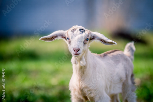 Obraz premium Beautiful little goat with blue eyes posing for portrait