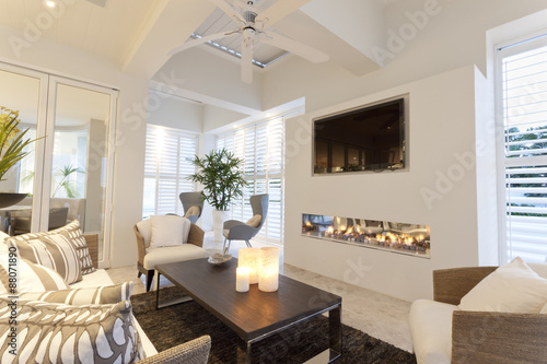 © JRstock, Fototapeta premium Beautiful living room with a fireplace