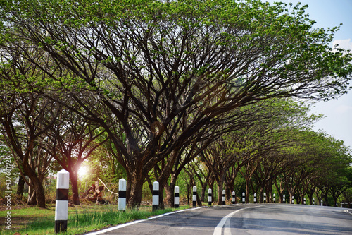 © หอมกลิ่น กล้วยไม้, Fototapeta premium Beautiful long road with green trees summer day
