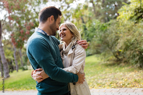 © NDABCREATIVITY, Fototapeta premium Beautiful loving couple going for walk outdoors
