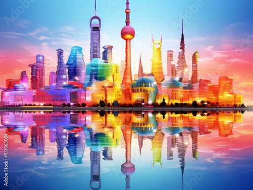 © MdSaiful, Fototapeta premium Beautiful Low angle view of illuminated building against sky