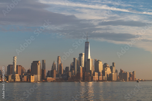 Fototapeta premium Beautiful Lower Manhattan New York City Skyline during a Sunset along the...