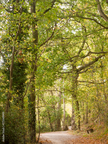 © Callum, Fototapeta premium beautiful lush tree top scenery in autumn colours leaves fall outside country