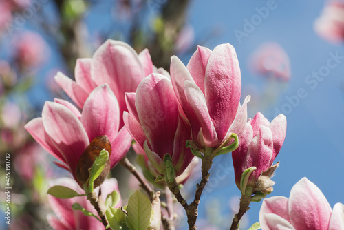 Fototapeta premium Beautiful magnolia tree blossoms in springtime. Jentle magnolia flower...