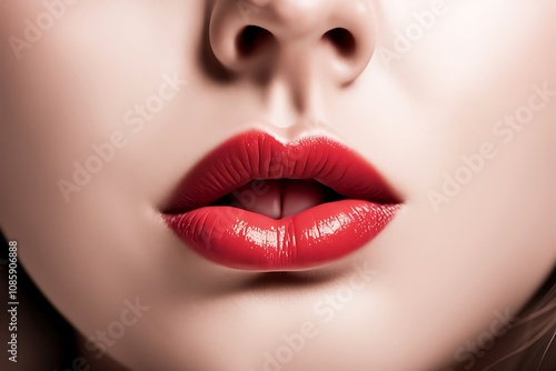 © MdAli, Obraz premium Beautiful make up of glamour red gloss lips