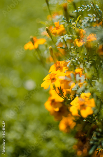 © galyna0404, Obraz premium Beautiful marigolds bloom outdoors