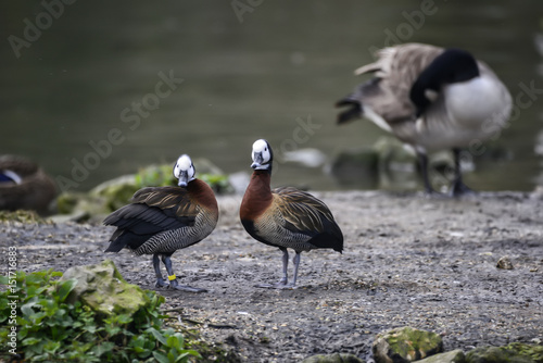 © veneratio, Fototapeta premium Beautiful mated pair of White Faced Whistling ducks preening each other in Spring