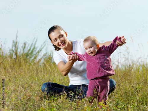 © Valua Vitaly, Fototapeta premium beautiful mather with smiling beby on nature