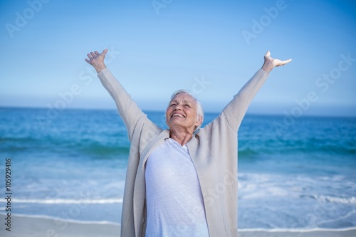 © WavebreakMediaMicro, Fototapeta premium Beautiful mature woman outstretching arms