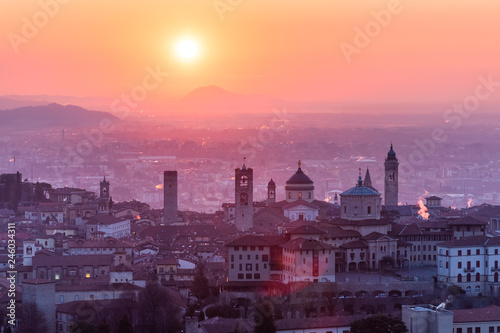 Obraz premium Beautiful medieval town at sunrise morning with main sights of Bergamo...