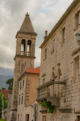 © Vitalii, Obraz premium Beautiful mediterranean landscape - town Tivat, Kotor bay Boka Kotorska , Montenegro.