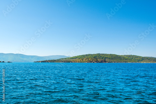 Fototapeta premium Beautiful Mediterranean landscape with Aegean sea and green hills