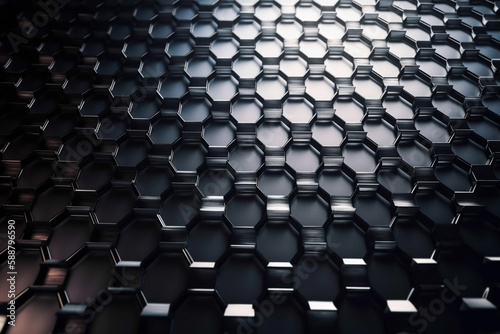 Fototapeta premium Beautiful metal hexagonal futuristic abstract shapes wallpaper background design texture pattern. Decorative metallic design decoration. Ai generated