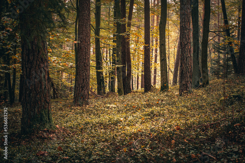 © Thilo Wagner, Fototapeta premium Beautiful misty autumn in the evening. Bavaria, Germany