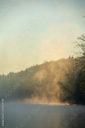 © Martins Vanags, Fototapeta premium beautiful misty morning on the natural forest river Gauja in Latvia