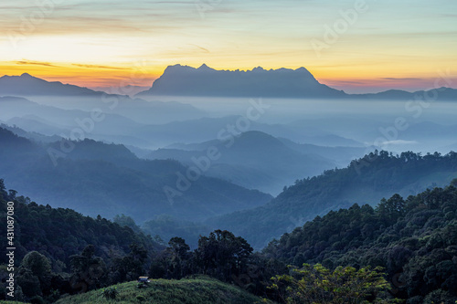 Obraz premium beautiful Misty Morning with Beautiful Sunrise which clear blue sky in morning
