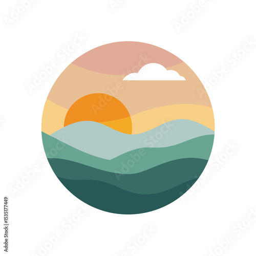 Fototapeta premium Beautiful Misty Sunrise Over Hills Vector Clipart For Serene And Peaceful...