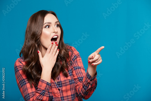 © veles_studio, Fototapeta premium Beautiful model at blue background