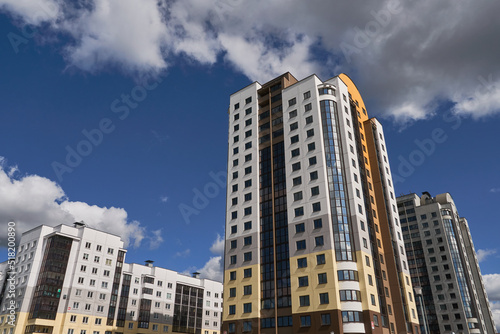 Naklejka premium Beautiful modern multi-storey building in a new area of the city. A place to live and do business in Europe.