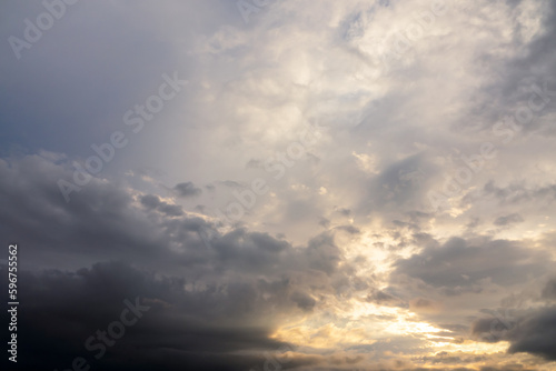 Obraz premium Beautiful moody sky with dark clouds at sunset, sky remplacement, nature background