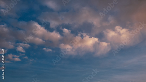 Obraz premium Beautiful morning sky with clouds. Panoramic format.