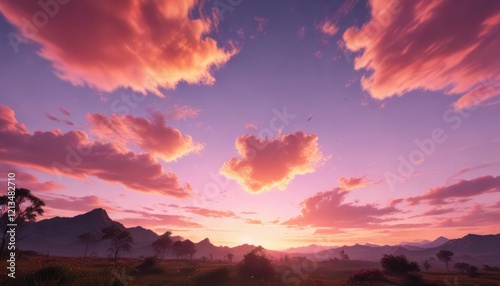 © Sathaporn Buarabut, Fototapeta premium Beautiful morning sky with vibrant orange and pink , bright, inspiring, warm
