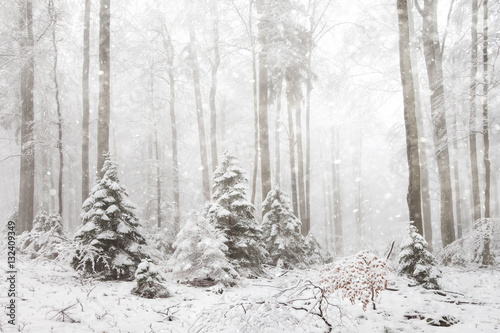 © robsonphoto, Naklejka premium Beautiful morning snowy and frosty winter forest landscape.
