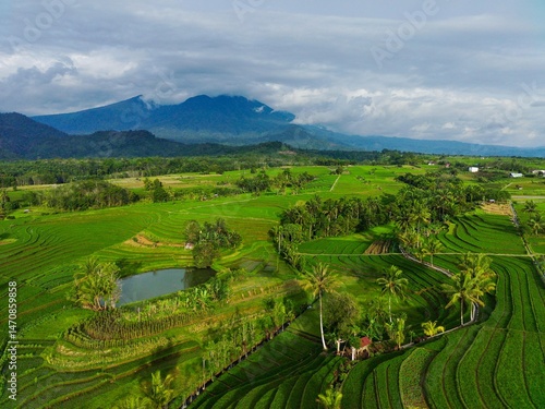 Fototapeta premium Beautiful morning view indonesia Panorama Landscape paddy fields with beauty...