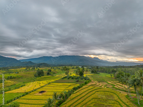 Fototapeta premium beautiful morning view indonesia panorama landscape paddy fields with beauty...