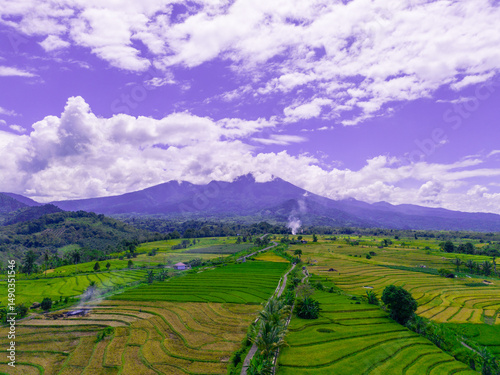 Fototapeta premium beautiful morning view indonesia panorama landscape paddy fields with beauty...
