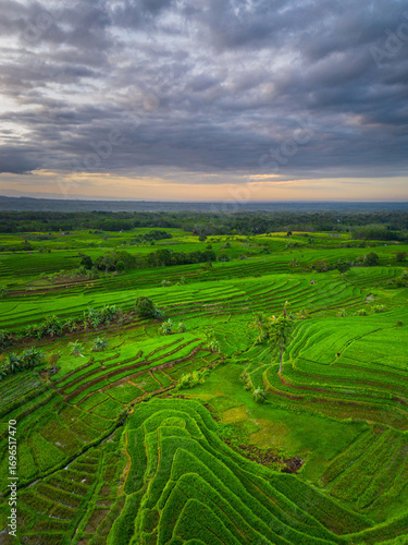 Fototapeta premium Beautiful morning view indonesia panorama landscape paddy fields with beauty...