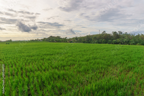 Fototapeta premium Beautiful morning view indonesia Panorama Landscape paddy fields with beauty...