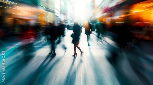 Fototapeta premium Beautiful motion blur of people walking in the morning rush hour busy modern life concept Suitable for web and magazine layouts : Generative AI