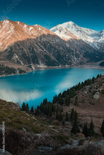 Naklejka premium Beautiful mountain lake on sunset