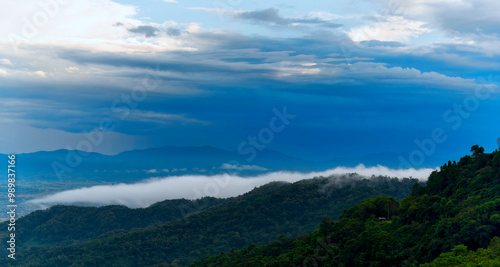 Obraz premium Beautiful Mountain landscape foggy windy mountain range green landscape asian...