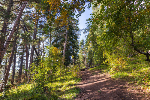 © Dyukareva Olga, Obraz premium Beautiful mountain landscape, forest and clouds