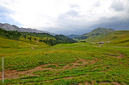 Fototapeta premium Beautiful mountain landscape in French Alps. Hike on passes Annes and Oulettaz