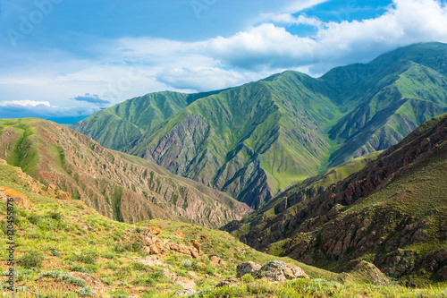 Fototapeta premium Beautiful mountain landscape in the Aeolian mountains, Kyrgyzsta