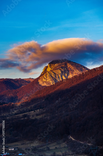 © czamfir, Fototapeta premium Beautiful mountain landscape in the Carpathian Mountains Romania at the transition from autumn to winter.