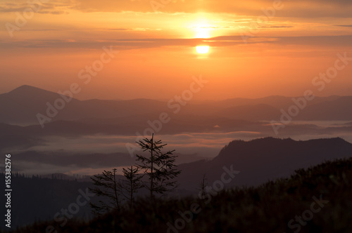 © svetazi, Fototapeta premium Beautiful mountain landscape. Sunrise over the mountain range.