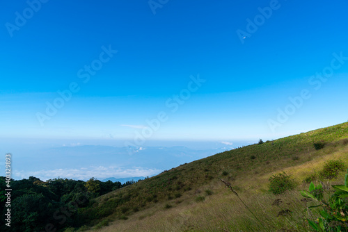 © topntp, Fototapeta premium beautiful mountain layer with clouds and blue sky