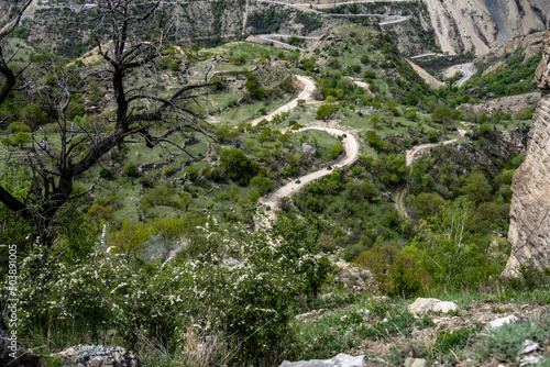 © константин константи, Fototapeta premium beautiful mountain peaks are buried in clouds and surrounded by winding mountain roads