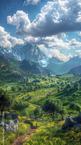 © Molang Visual, Obraz premium Beautiful Mountain Valley Landscape Illustration