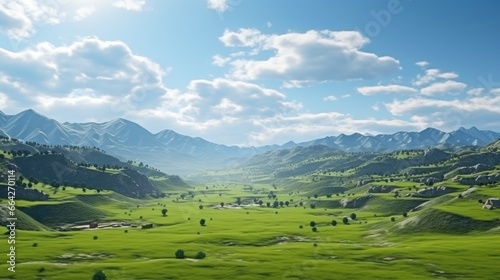Obraz premium Beautiful mountainous landscape photo with blue sky and clouds