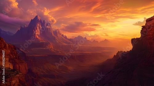 © Berkah, Fototapeta premium Beautiful mountainous landscape with the sunset in the background.