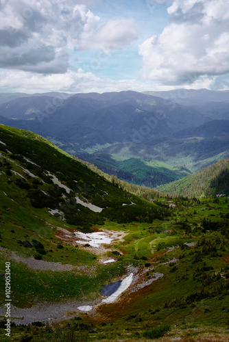 © luengo_ua, Fototapeta premium Beautiful mountains landscape with green hills. Carpathians, Ukraine.