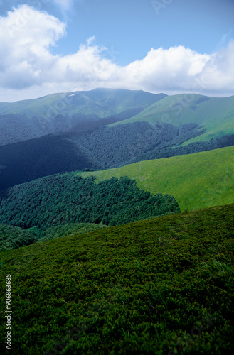 © luengo_ua, Fototapeta premium Beautiful mountains landscape with green hills. Carpathians, Ukraine.