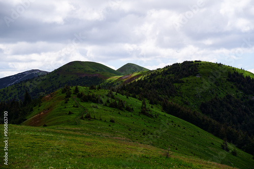 © luengo_ua, Fototapeta premium Beautiful mountains landscape with green hills. Carpathians, Ukraine.