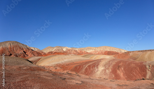 Fototapeta premium Beautiful mountains with red soil in Khizi. Azerbaijan.